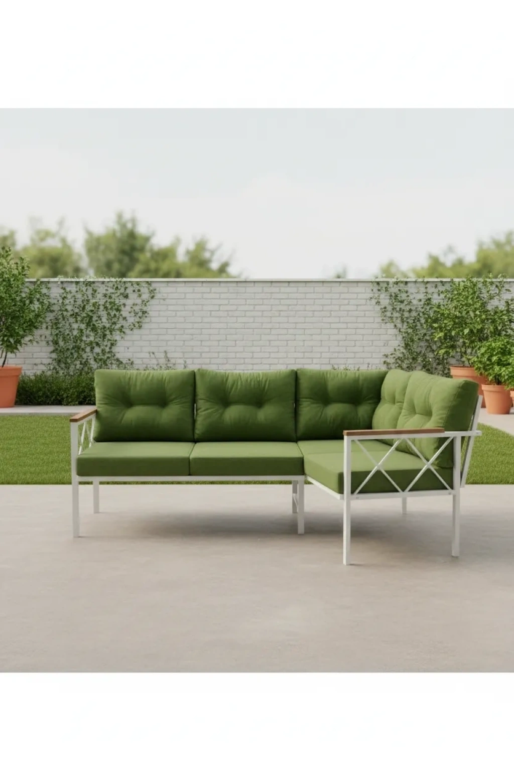 Bahçe balkon teras cafe oturma grubu 2+2 köşe, Genişlik 180cm Derinlik 117cm PROFİL 20X30mm Statik fırın boyalı oturma süngeri 9cm 22 danste Döşemeler fermuarlıdır yıkanabilir 1.kalite keten kumaş. masa dahil değildir
