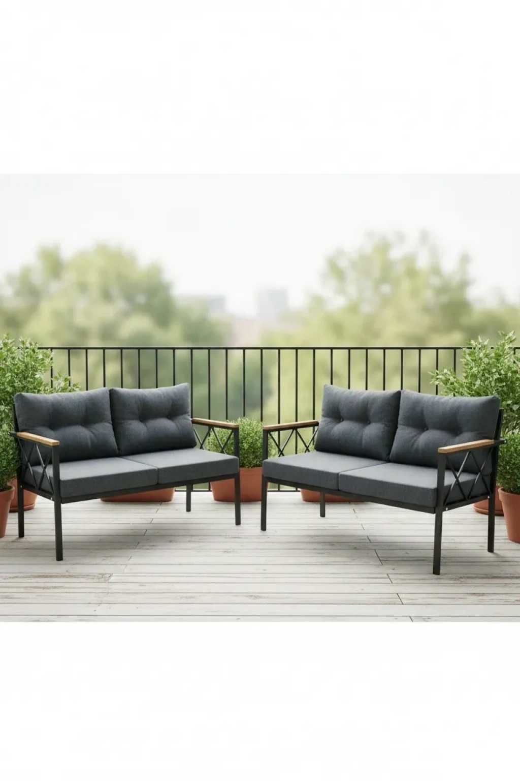 - Dayanıklı metal malzeme kullanımı, uzun ömürlü ve sağlam bir yapı sunar; - Balkon, bahçe, kafe ve ofis gibi farklı mekanlarda rahatlıkla kullanılabilen çok yönlü tasarım; - 2+2 kişilik oturma kapasitesiyle misafirlerinizi ağırlamak için idealdir; - Bistro set olarak tasarlanmış bu ürün, şık ve modern bir görünümle mekanınıza estetik bir dokunuş katar;