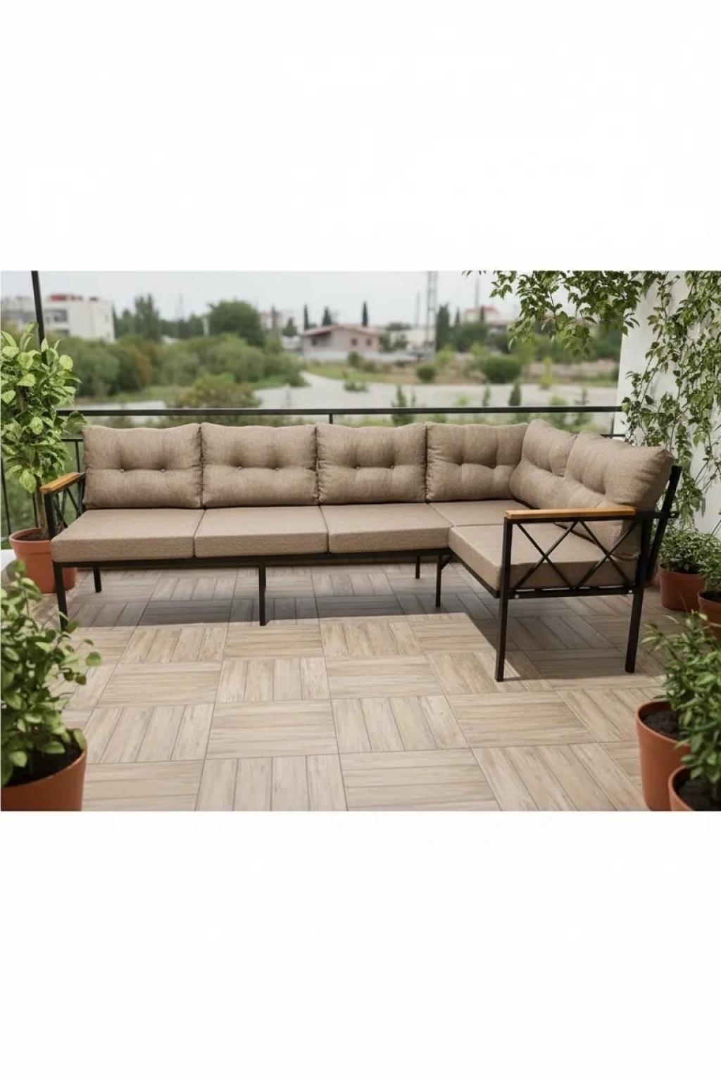 Modern ve şık tasarımıyla dikkat çeken bu oturma grubu, balkonunuzda, bahçenizde veya kafenizde konforlu bir atmosfer yaratır; Dayanıklı metal malzemesi sayesinde uzun ömürlü kullanım sunar ve dış mekan koşullarına karşı yüksek direnç gösterir; 3+2 kişilik oturma kapasitesiyle arkadaşlarınızla veya ailenizle keyifli sohbetler için idealdir; Kolay temizlenebilir yapısı ile pratik kullanım sağlar; böylece dış mekan mobilyalarınız her zaman temiz ve bakımlı kalır;