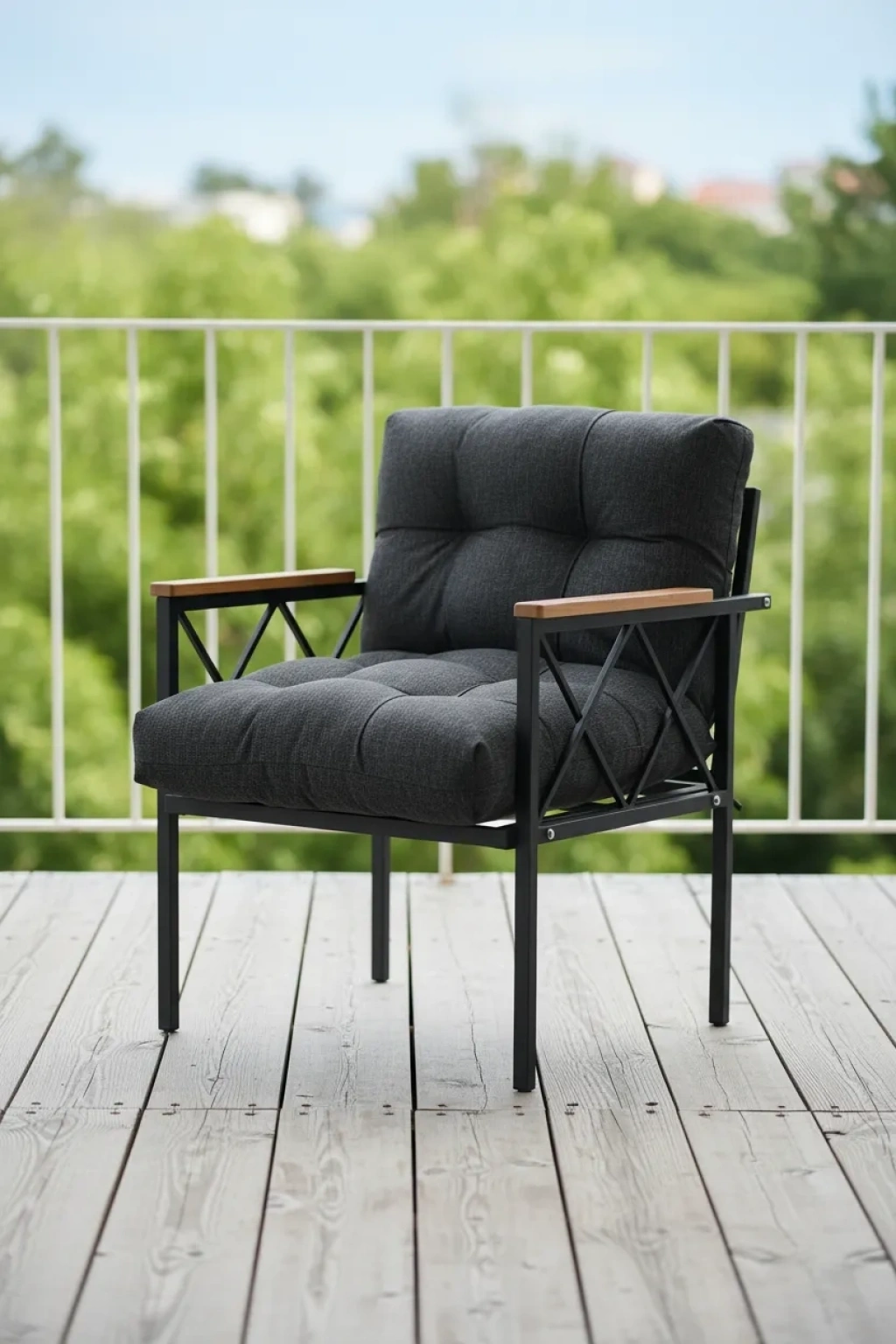 Tek kişilik oturma alanı sunan bu balkon, bahçe veya ofis koltuk takımı, konforlu ve şık bir dinlenme alanı yaratır; Metal malzeme kullanımı sayesinde dayanıklılık ve uzun ömürlü kullanım vaat eder; Tekli sandalye tasarımı, kişisel kullanım için idealdir ve mekanınızda modern bir dokunuş sağlar;