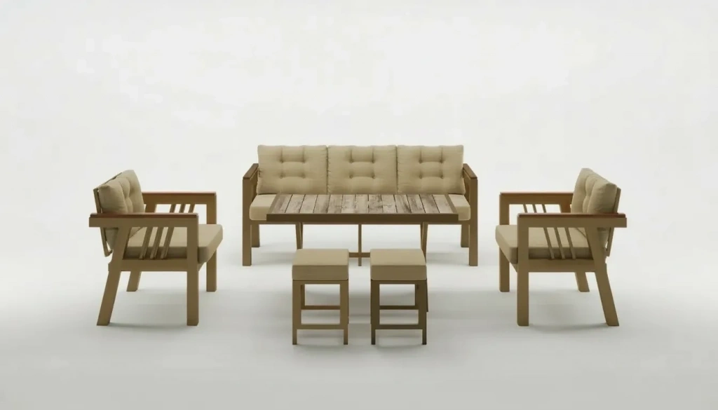 Elmas 3+1+1 + Masa + 2 Puf (KREM) Metal Gövde Balkon-bahçe-kafe,çay Seti,koltuk Takımı,oturma Grubu,ofis Koltuğu