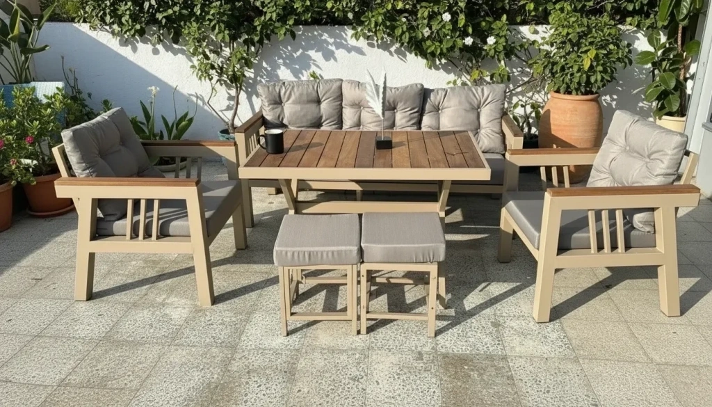 Elmas 3+1+1 + Masa + 2 Puf (KREM) Metal Gövde Balkon-bahçe-kafe,çay Seti,koltuk Takımı,oturma Grubu,ofis Koltuğu