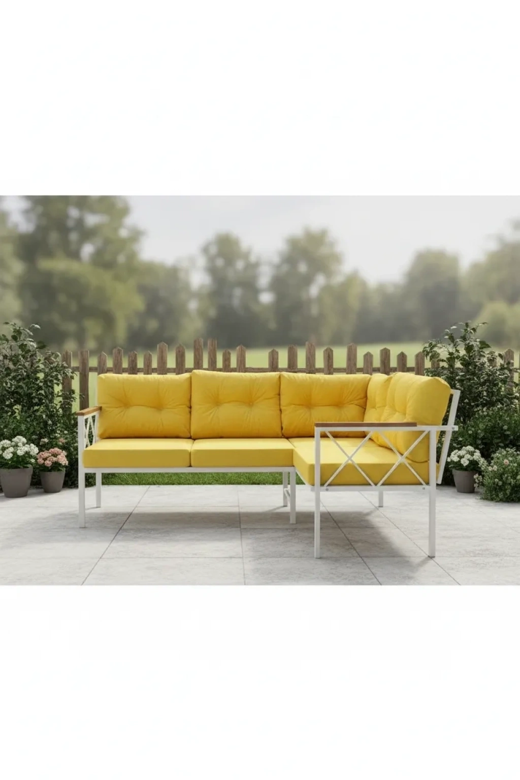 Bahçe balkon teras cafe oturma grubu 3+2 köşe, ; Genişlik 238cm Derinlik 117cm ; PROFİL 20X30mm ; Statik fırın boyalı oturma süngeri 9cm 22 danste ; Döşemeler fermuarlıdır yıkanabilir 1.kalite keten kumaş.; ; masa dahil değildir ;