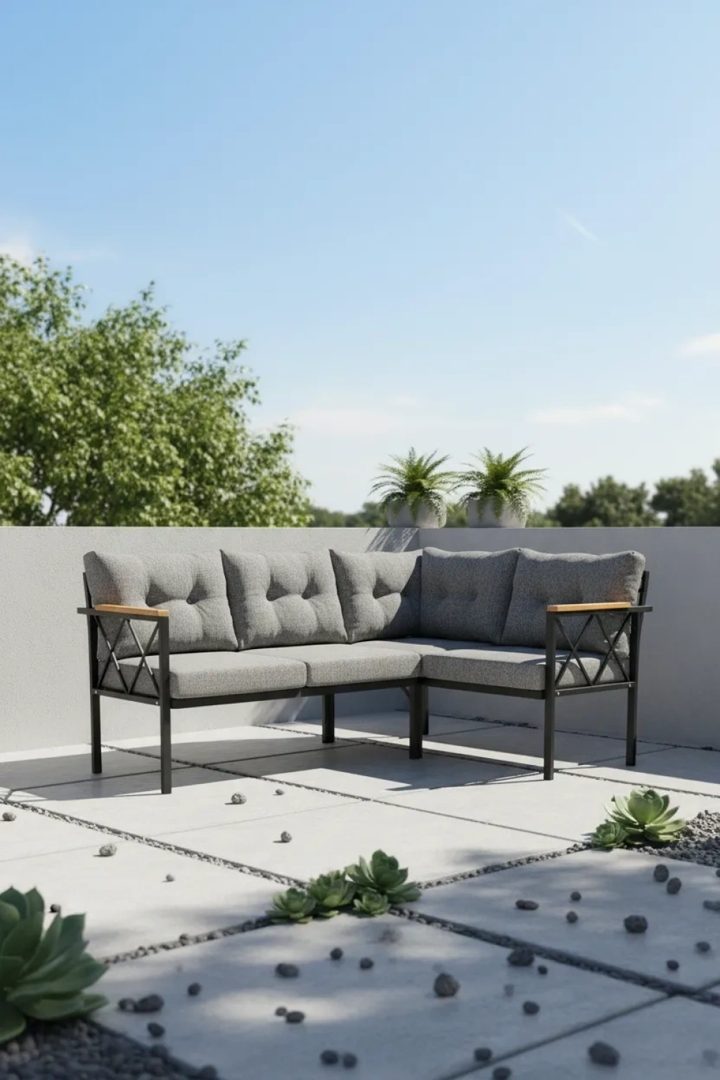 Modern ve şık tasarımıyla dikkat çeken köşe koltuk takımı, balkon, bahçe, kafe ve ofis gibi farklı mekanlarda estetik bir görünüm sunar; Dayanıklı metal malzemesi sayesinde uzun ömürlü kullanım vaat eder ve dış mekan koşullarına karşı yüksek direnç gösterir; Oturma grubu olarak tasarlanmış bu ürün, konforlu ve rahat bir oturma deneyimi sağlar; aileler, arkadaşlar veya iş arkadaşlarıyla keyifli vakit geçirmek için idealdir; Kolay temizlenebilir yapısı ile pratik kullanım sunar; böylece dış mekan mobilyalarınız her zaman temiz ve bakımlı kalır;