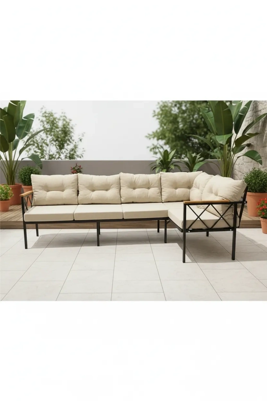 Modern ve şık tasarımıyla dikkat çeken bu oturma grubu, balkonunuzda, bahçenizde veya kafenizde konforlu bir atmosfer yaratır; Dayanıklı metal malzemesi sayesinde uzun ömürlü kullanım sunar ve dış mekan koşullarına karşı yüksek direnç gösterir; 3+2 kişilik oturma kapasitesiyle arkadaşlarınızla veya ailenizle keyifli sohbetler için idealdir; Kolay temizlenebilir yapısı ile pratik kullanım sağlar; böylece dış mekan mobilyalarınız her zaman temiz ve bakımlı kalır;