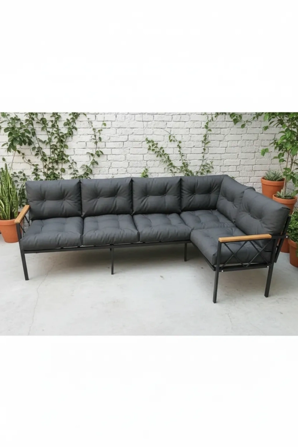 - Modern tasarımıyla dikkat çeken Miami Köşe Koltuk Takımı, balkon, bahçe veya kafe gibi çeşitli alanlarda rahatlıkla kullanılabilir.; - Metal malzeme kullanımı sayesinde dayanıklılık ve uzun ömürlü kullanım vaat eder.; - Masasız tasarımı ile ekstra yer tasarrufu sağlar ve istediğiniz masa düzenine kolayca uyum sağlar.; - Oturma grubu olarak tasarlanmış bu takım, konforlu oturum imkanı sunarak keyifli zaman geçirmenize olanak tanır.